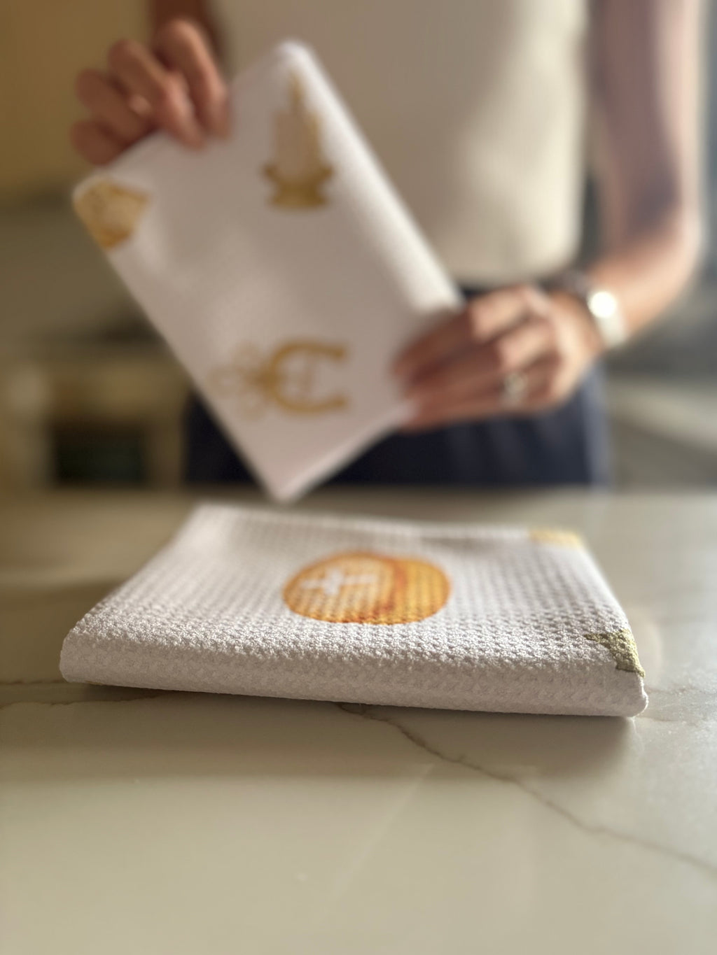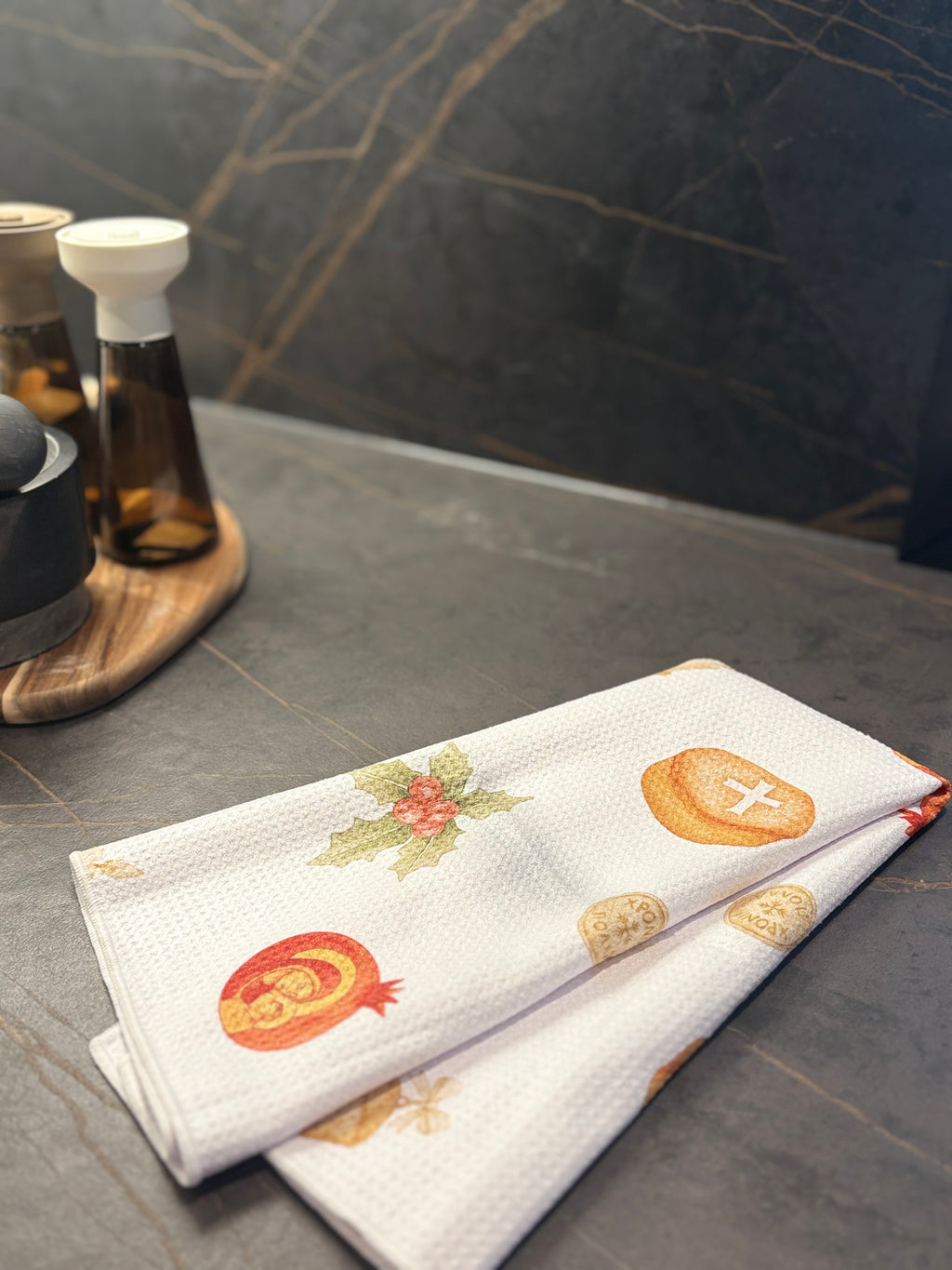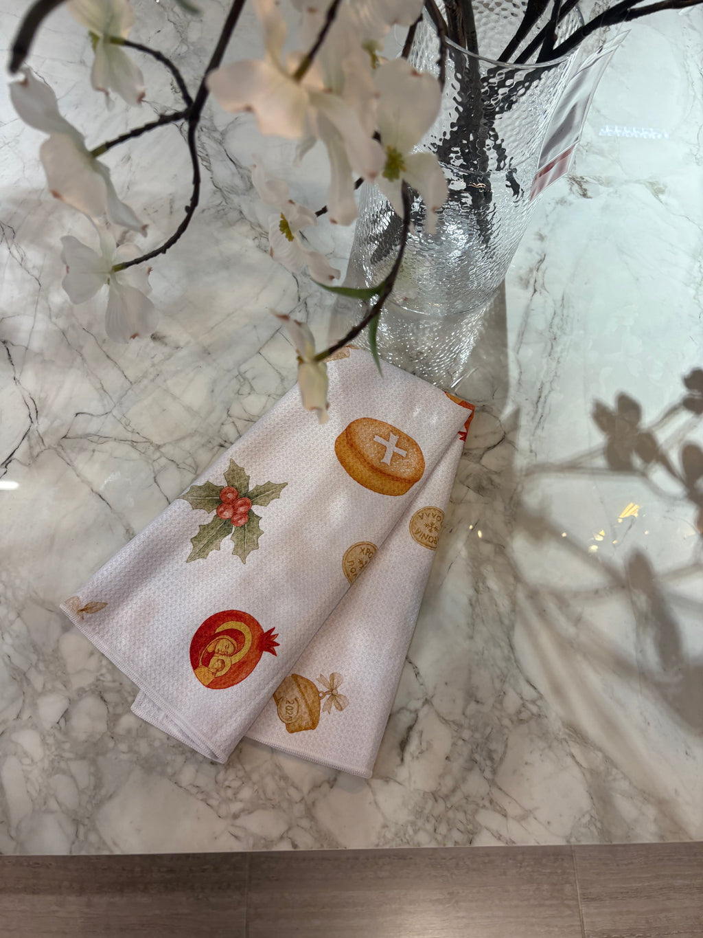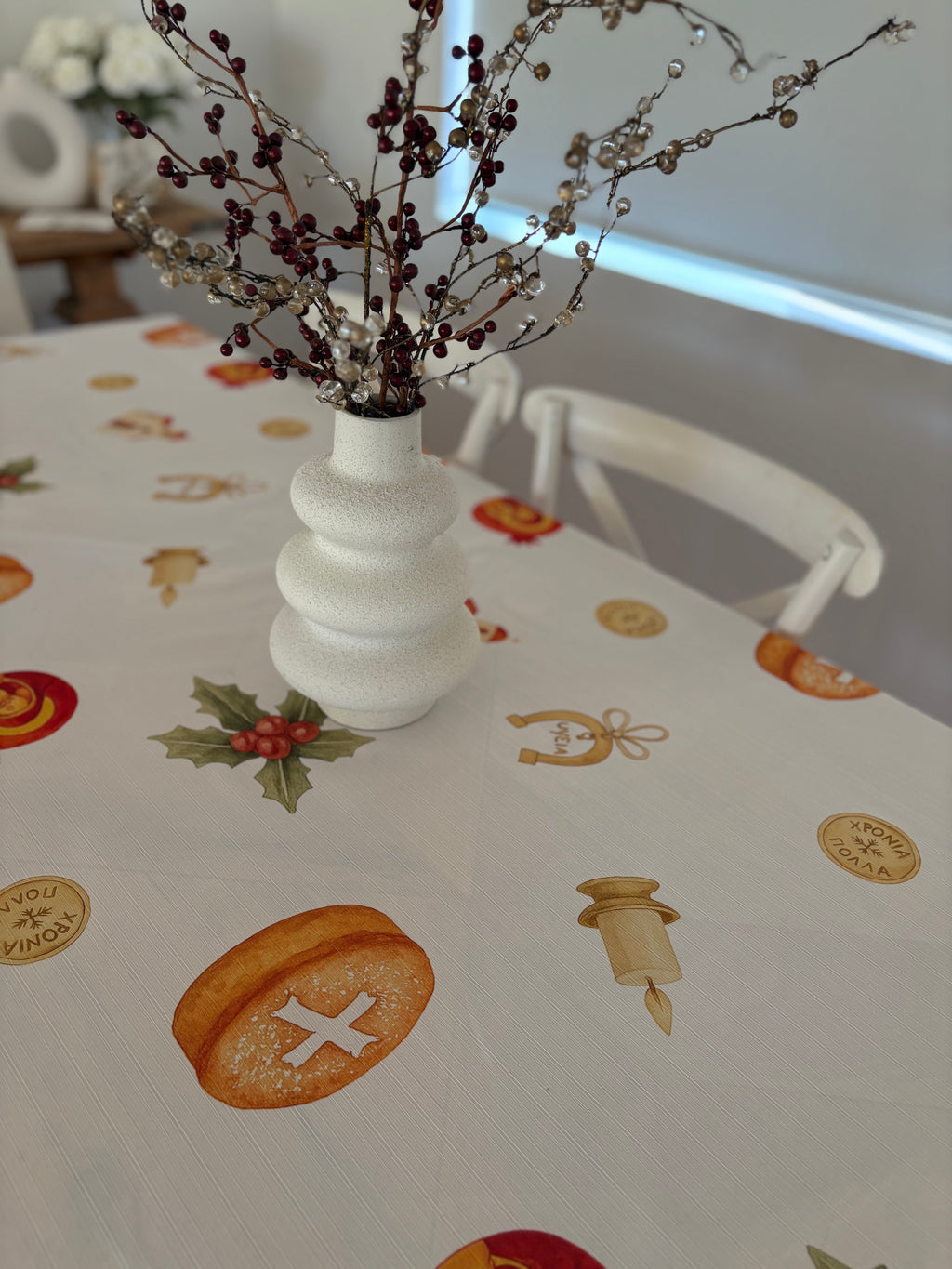 Bring a touch of tradition into your home with our Hronia Polla napery collection, featuring a stunning collection of hand-painted Greek Orthodox motifs. Each motif is inspired by sacred symbols, timeless patterns, and the rich artistry of beautiful heritage. Elevate your dining table this festive season with our napery collection which is bound to become a heirloom piece you will use year after year.